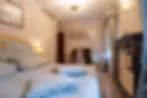 Sala da pranzo con angolo cottura, camera doppia, soggiorno/seconda stanza con divano letto, bagno.